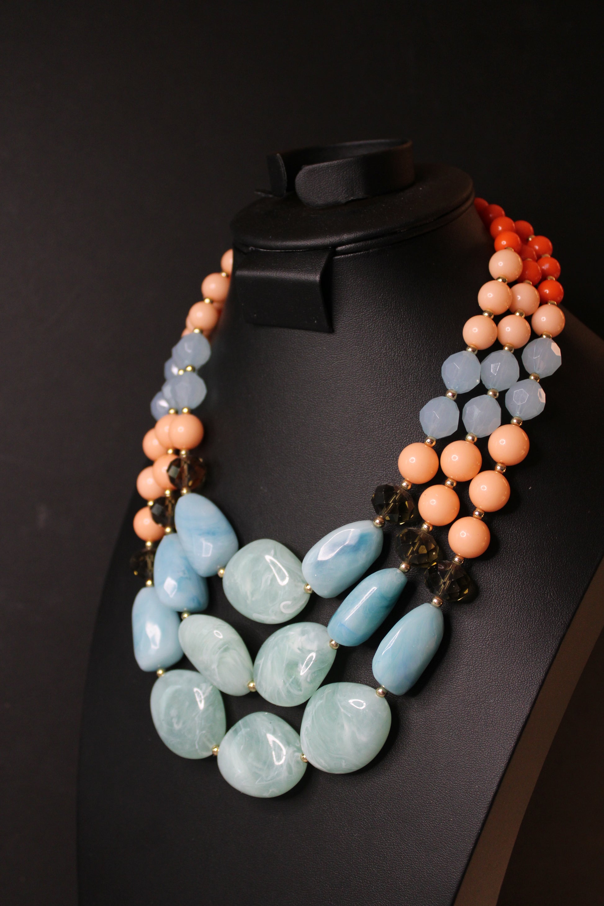 Crafted with an exquisite combination of vibrant beads, this piece is perfect for special occasions or everyday wear. Features a striking design with large, smooth stones that catch the light beautifully. Perfect for layering or wearing alone for a bold statement.